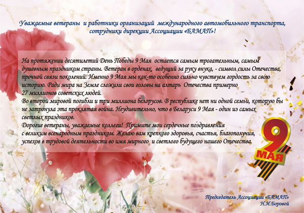 БАМАП. Поздравление Председателя Ассоциации «БАМАП» Борового Н.И. с Днем Победы.08.05.2009